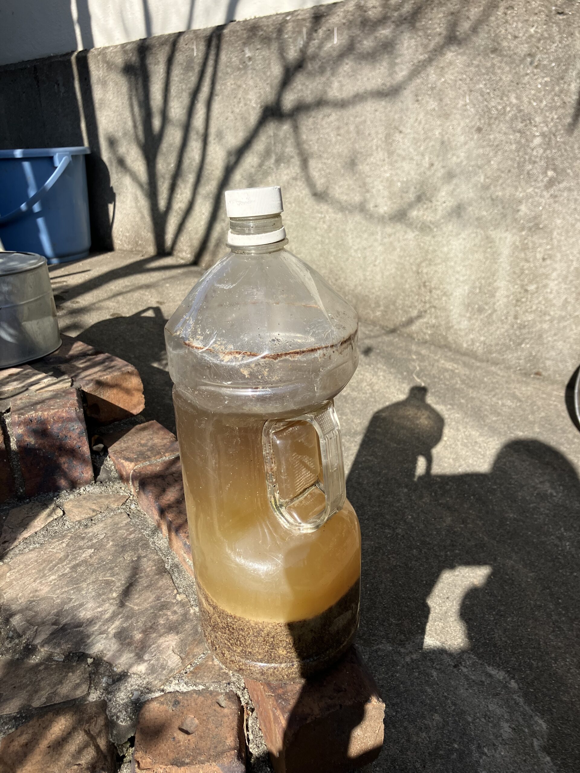 をキャンプ用のポリタンクに入れ、1年ほど発酵させて使用します。